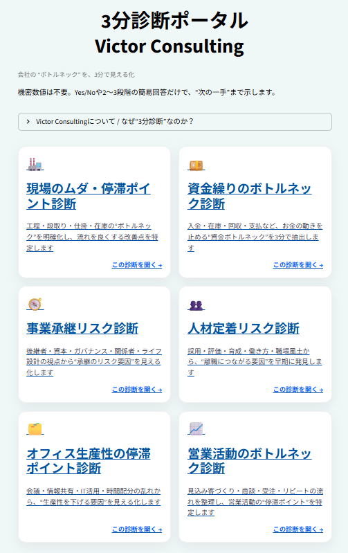 経営の“止まりやすい場所”を 3分で可視化する「3分診断ポータル」 を公開しました。