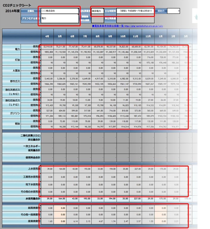 右のシートは日本商工会議所が無料で提供する、自社のエネルギー使用量やCO2排出量を簡単に“見える化”できるツールです。